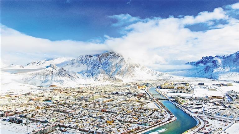 阿里地區(qū)持續(xù)開展河湖“清四亂”專項行動,實現(xiàn)河暢、水清、岸綠、景美,河湖資源永續(xù)利用。 圖為雪后的獅泉河。 記者 洛桑旦增 攝