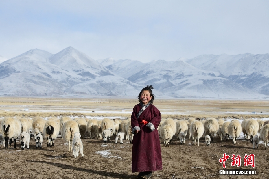 1月27日,當(dāng)雄縣龍仁鄉(xiāng)烏達(dá)村放牧的小姑娘。當(dāng)雄縣位于西藏自治區(qū)拉薩市北部,距拉薩市區(qū)170公里?!爱?dāng)雄”,藏語(yǔ)意為“天選牧場(chǎng)”,平均海拔約4200米,草場(chǎng)廣闊,土地肥沃。 中新社記者 貢嘎來(lái)松 攝