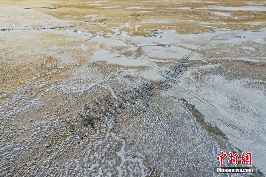 1月27日,當(dāng)雄縣龍仁鄉(xiāng)附近牧場(chǎng)。當(dāng)雄縣位于西藏自治區(qū)拉薩市北部,距拉薩市區(qū)170公里。“當(dāng)雄”,藏語(yǔ)意為“天選牧場(chǎng)”,平均海拔約4200米,草場(chǎng)廣闊,土地肥沃。(無(wú)人機(jī)照片) 中新社記者 貢嘎來(lái)松 攝