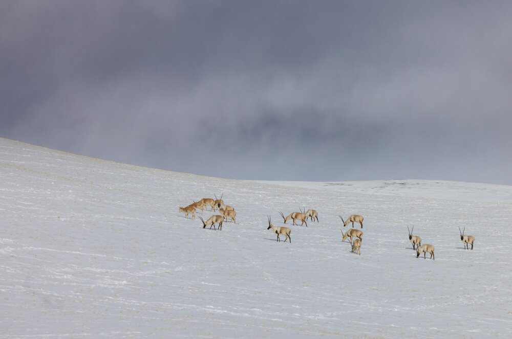 阿里日土縣境內(nèi)國道216旁遇見藏羚羊。