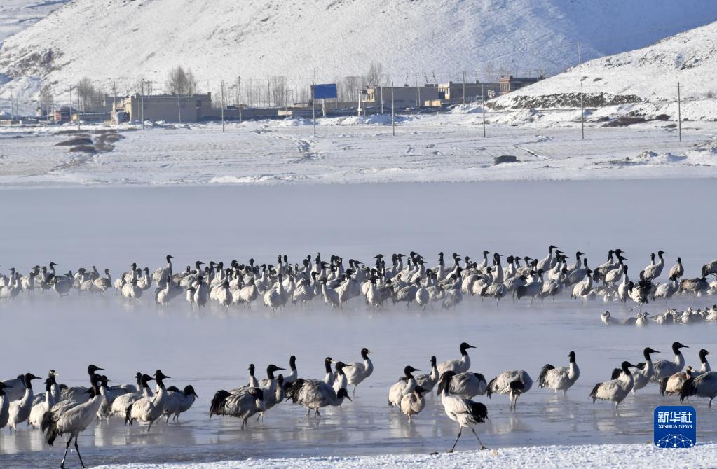 在林周縣卡孜鄉(xiāng)投食點(diǎn),成群的黑頸鶴正在冬日的陽(yáng)光下覓食。林周縣檢察院檢察長(zhǎng)索朗晉美說(shuō):“為黑頸鶴投食活動(dòng),有助于進(jìn)一步推動(dòng)形成‘西藏雅魯藏布江中游河谷黑頸鶴國(guó)家級(jí)自然保護(hù)區(qū)’生態(tài)環(huán)境保護(hù)合力,通過(guò)檢察干警的實(shí)際行動(dòng)讓人與自然和諧共生的美好畫(huà)卷充分展現(xiàn)。