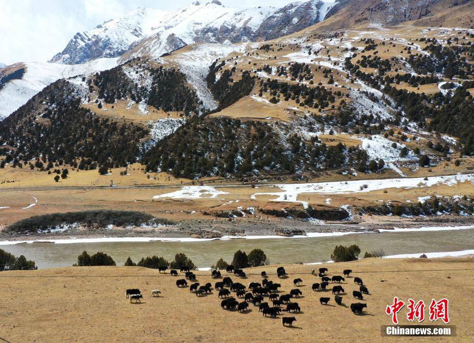 2月27日,一場降雪為青海省玉樹藏族自治州三江源國家公園瀾滄江源園區(qū)披上銀裝,藍天白云,雪山江河,牦牛在金燦燦的高山草場上悠閑散步,形成一幅幅多彩的生態(tài)美景圖。馬銘言 攝