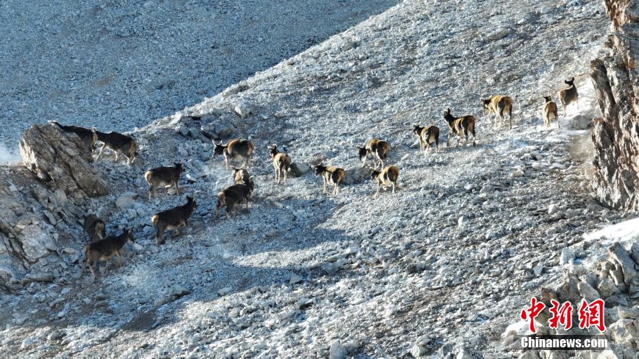 國家一級保護動物白唇鹿“成群結(jié)隊”奔跑在祁連山