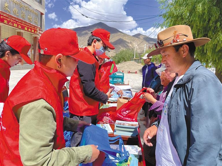 山南市新時(shí)代文明實(shí)踐志愿者在開展環(huán)保宣傳活動