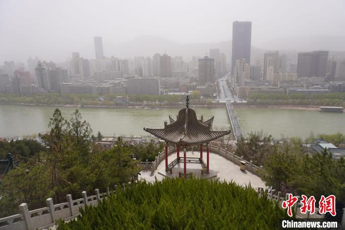 圖為3月24日,從蘭州市白塔山上,眺望被沙塵籠罩的黃河對岸城區(qū)。 九美旦增 攝