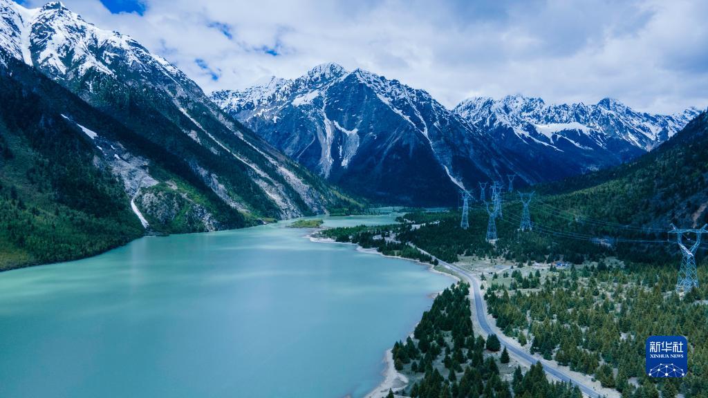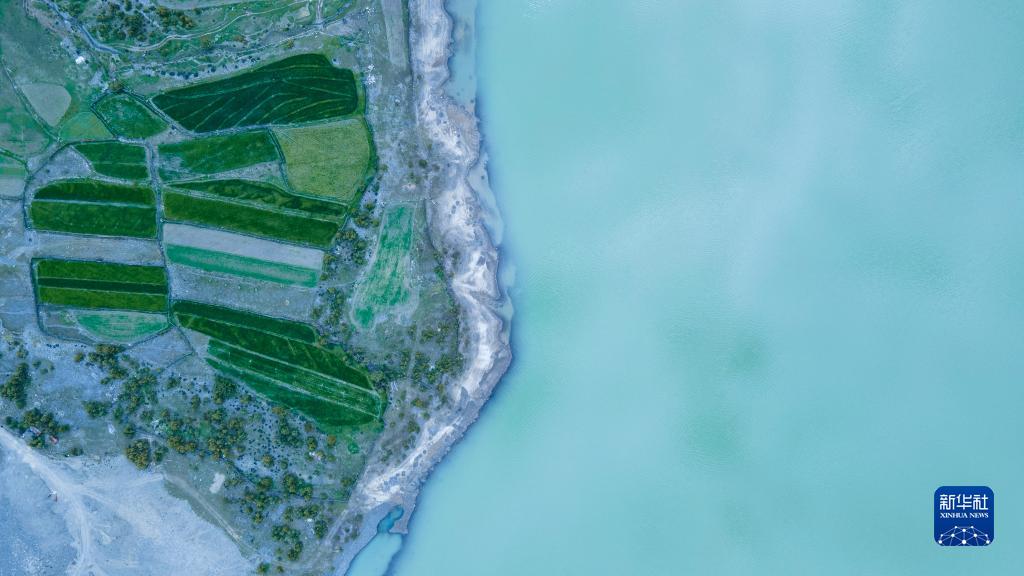 這是5月30日拍攝的然烏湖風(fēng)光(無(wú)人機(jī)照片)。新華社記者 陳尚才 攝