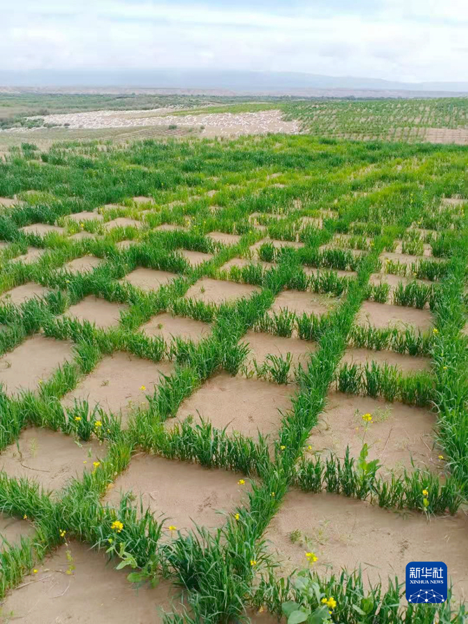 “2018年以來,我們積極開展治沙新材料試驗研究,利用小麥、青稞、燕麥、披堿草等生物材料開展活沙障設(shè)置試驗?,F(xiàn)在四種生物沙障當(dāng)年成活率可達(dá)到95%,起到良好的固沙作用?!壁w雪彬說。