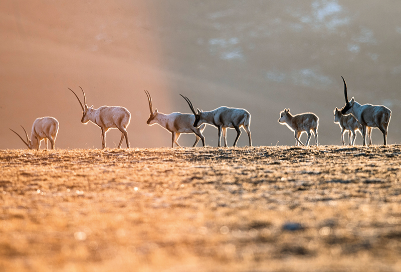 4月的傍晚,金色的霞光灑落在綿延的草原上。遠處成群的藏羚羊、藏野驢時而低頭進食,時而邁步奔跑。 [詳細]