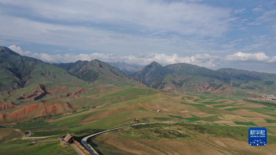 這是6月19日在祁連縣拍攝的祁連山支脈卓爾山美景(無人機(jī)照片)。新華社記者 李占軼 攝