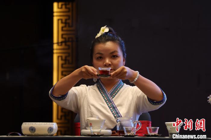 圖為國家高級茶藝師現(xiàn)場沖泡低氟普洱健康茶?!∶赚敋W珠 攝
