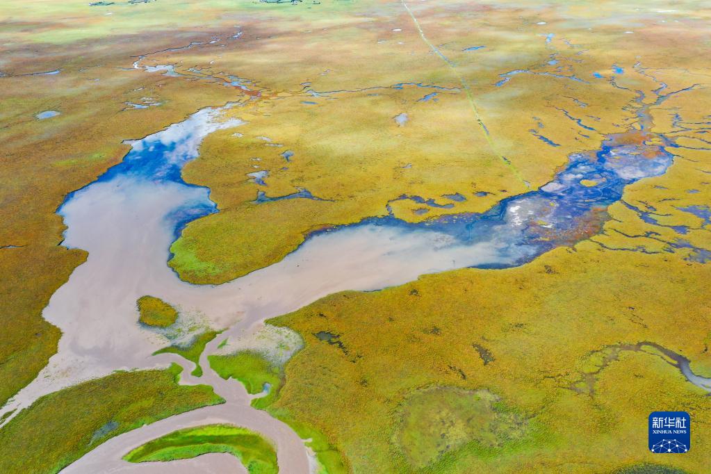 這是瑪曲縣阿萬(wàn)倉(cāng)濕地內(nèi)的河流和沼澤(9月17日攝,無(wú)人機(jī)照片)。新華社記者 郎兵兵 攝
