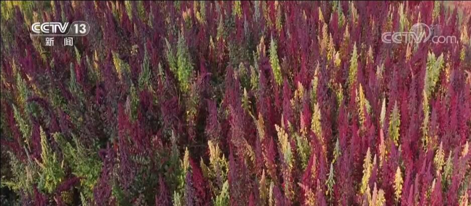 近年來,烏蘭縣采取了藜麥多品種繁育的方式,在這片1000畝的藜麥良種繁育田里,就有700多種性狀不同的藜麥,工作人員通過比對和良種選育,篩選適宜品種進行推廣。不同品種的藜麥成熟后,藜麥穗呈現(xiàn)出火紅、金黃、紫紅等多種色彩,藜麥田宛如一幅色彩斑斕的油畫。在陽光的照射下,隨風搖擺的藜麥穗和村民們忙碌的身影組成了秋日的豐收美景圖。
