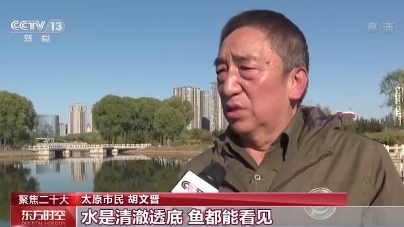 太原市民 胡文晉:水是清澈透底,魚都能看見,綠色比較多了,非常幸福,有獲得感、幸福感。二十大以后,我相信總書記會帶領(lǐng)我們過上更加幸福美滿的生活,更加環(huán)境優(yōu)美。