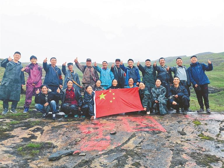 圖為“家是玉麥,國(guó)是中國(guó)”,人人爭(zhēng)做神圣國(guó)土守護(hù)者、幸福家園建設(shè)者。圖為“七一勛章”獲得者卓嘎和同為“時(shí)代楷?!钡拿妹醚胱诘诌呇策墶?/p>