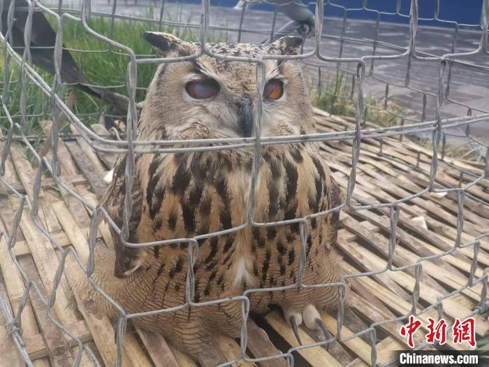 青?;ブ衤?lián)手救助國(guó)家二級(jí)保護(hù)野生動(dòng)物長(zhǎng)耳鸮