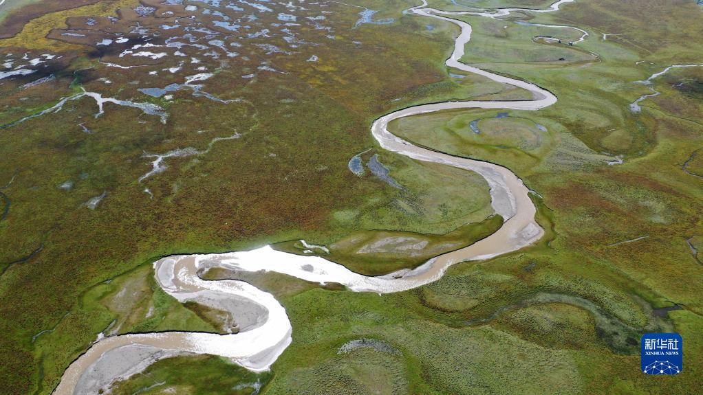 這是2022年9月21日拍攝的瑪曲縣阿萬倉濕地(無人機照片)。新華社記者 陳斌 攝