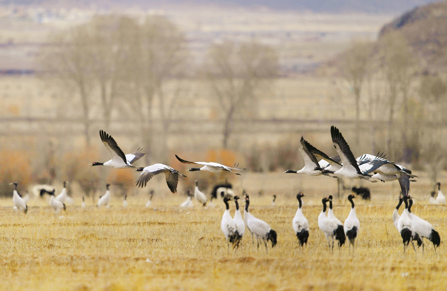 拉薩林周縣位于拉薩河上游及澎波河流域,是雅魯藏布江中游河谷地區(qū)黑頸鶴分布數(shù)量最為集中的保護(hù)區(qū)。黑頸鶴是國家一級(jí)保護(hù)動(dòng)物。目前,每年到林周縣越冬的黑頸鶴已達(dá)2000只左右,林周縣區(qū)域內(nèi)的大片濕地成為黑頸鶴的“冬季樂園”。