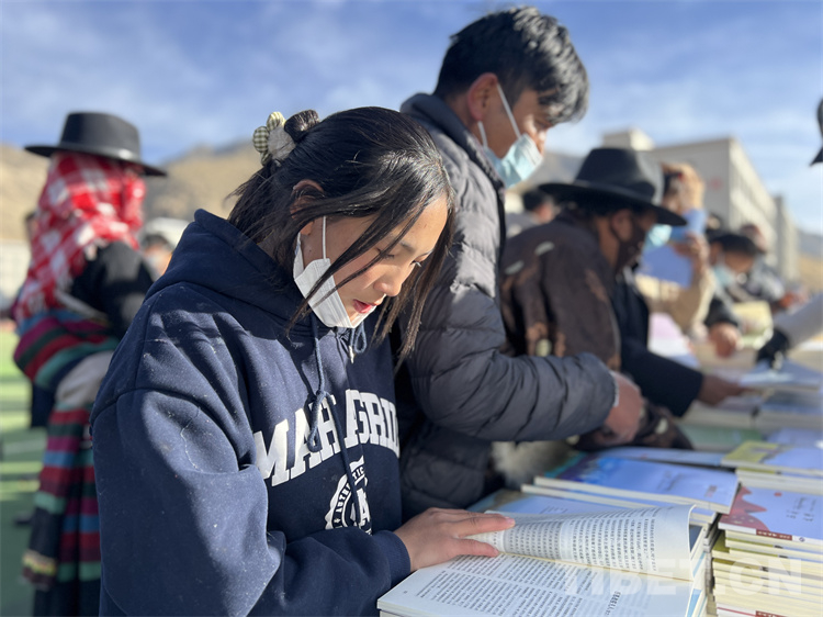 在送“書籍” 現(xiàn)場,《西藏文學(xué)》《西藏文藝》《邦錦梅朵》三個編輯部工作人員為現(xiàn)場群眾和當(dāng)?shù)馗刹抠浰蜁?,?dāng)?shù)厝罕姾蛯W(xué)生們紛紛前來翻看尋找自己喜歡的書籍,大家人手幾本書。“我平時喜歡閱讀藏文文學(xué)作品,這次要了兩本文學(xué)相關(guān)書籍拿回家閱讀”17歲的益西巴珍說。據(jù)了解,此次活動西藏文聯(lián)向熱愛閱讀的群眾和學(xué)生共贈送1500本(冊)文藝書籍和期刊。