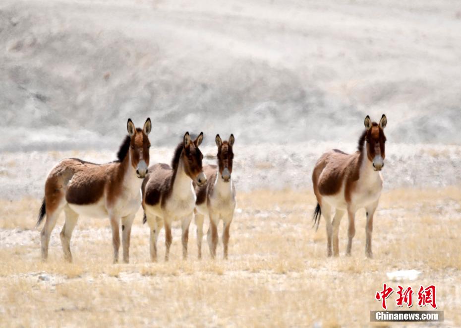 4月10日,西藏阿里地區(qū)札達(dá)縣拍攝到的藏野驢。藏野驢為國(guó)家一級(jí)重點(diǎn)保護(hù)動(dòng)物、青藏高原特有物種。藏野驢是我國(guó)野驢中體型最大的一種,外形與蒙古野驢相似,但要比蒙古野驢大許多,而且性格也比蒙古野驢兇悍。它的四肢和身體下側(cè),包括頸下方白色,耳朵內(nèi)側(cè)和口鼻端也是白色。在背脊上,一條深色條紋從鬃毛處一直延伸到尾端,尾巴上有一簇黑色細(xì)絲狀的毛。近年來(lái),隨著西藏生態(tài)保護(hù)力度不斷加大,藏野驢等多種野生動(dòng)物頻頻亮相。