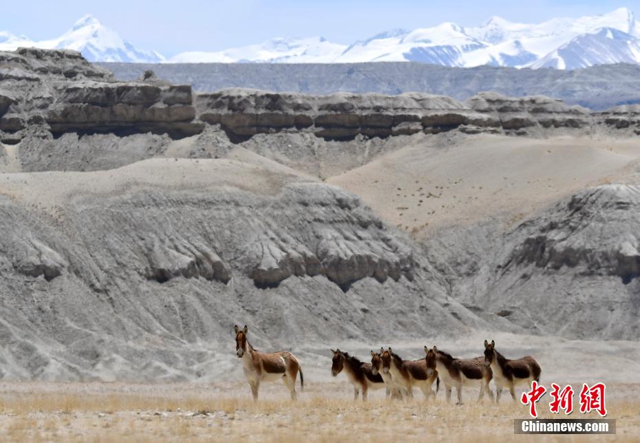 4月10日,西藏阿里地區(qū)札達(dá)縣拍攝到的藏野驢。