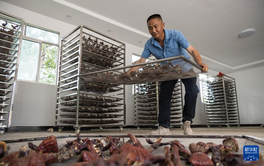 拉巴頓珠正在晾曬靈芝(9月9日攝)。新華社發(fā) (丁增尼達(dá) 攝)