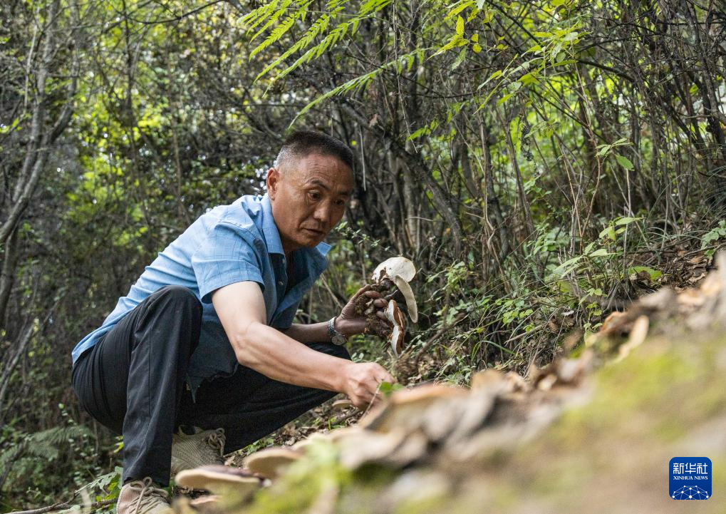 拉巴頓珠正在檢查靈芝生長(zhǎng)狀況(9月9日攝)。新華社發(fā) (丁增尼達(dá) 攝)
