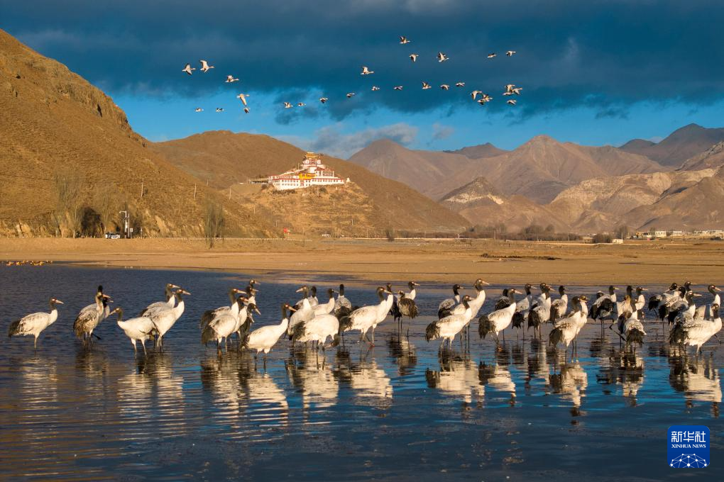 西藏拉薩市林周縣位于拉薩河上游及澎波河流域,平均海拔約4200米,是黑頸鶴的主要越冬地之一。
