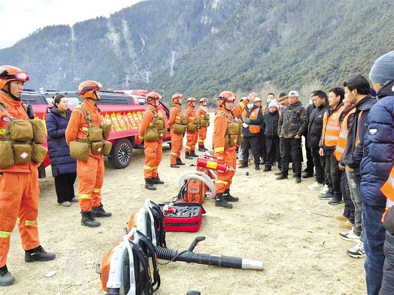 消防隊員對參訓人員講解撲救森林火災注意事項等方面內(nèi)容。圖片均由通訊員 尼瑪卓瑪 攝
