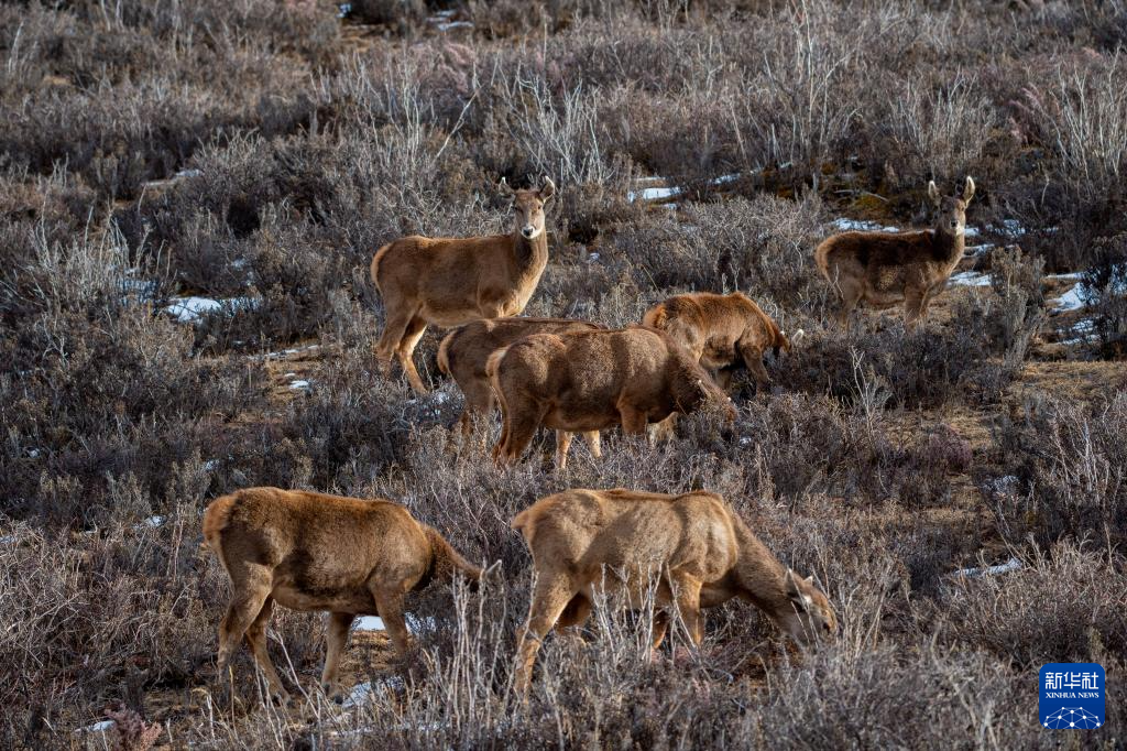 西藏山南市桑日西藏馬鹿縣級自然保護(hù)區(qū)內(nèi)的西藏馬鹿(1月14日攝)。新華社記者 田金文 攝