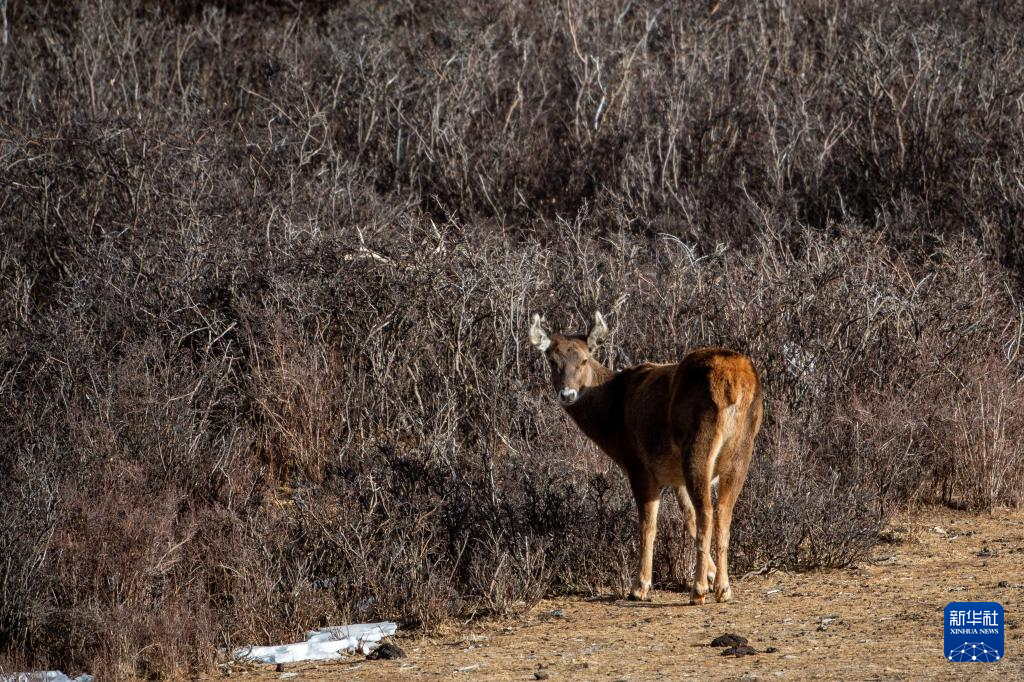 西藏山南市桑日西藏馬鹿縣級自然保護(hù)區(qū)內(nèi)的西藏馬鹿(1月14日攝)。新華社記者 旦增尼瑪曲珠 攝