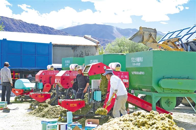 圖為日喀則市薩迦縣飼草料加工現場。記者 次仁平措 攝
