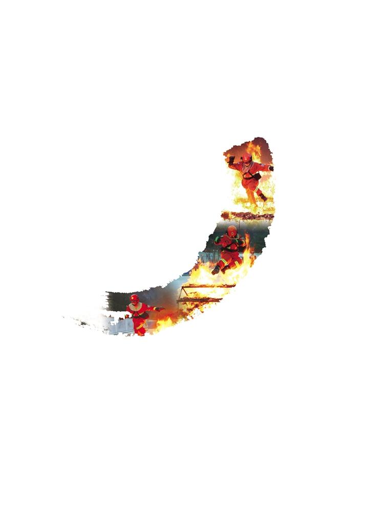 訓(xùn)練中,消防員跨火欄、穿火林。記者 謝筱純 王珊 攝