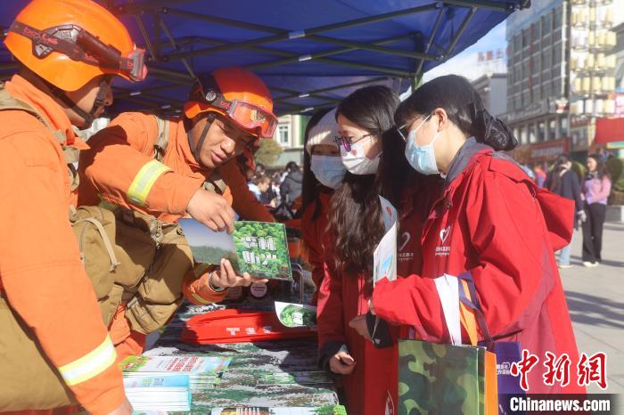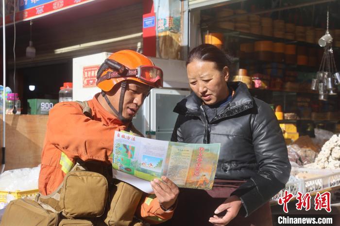 圖為消防員正在開(kāi)展防火知識(shí)普及。西繞拉翁 攝