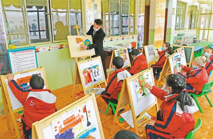 圖為買巴鄉(xiāng)小學(xué)學(xué)生正在課堂上以繪畫的方式表達(dá)對(duì)偉大祖國(guó)的熱愛(ài)之情。記者 唐斌 次旺 攝