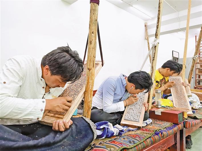 西藏雪堆白技工學(xué)校的學(xué)生們?cè)诰毩?xí)木刻技術(shù)。記者 孫文娟 攝