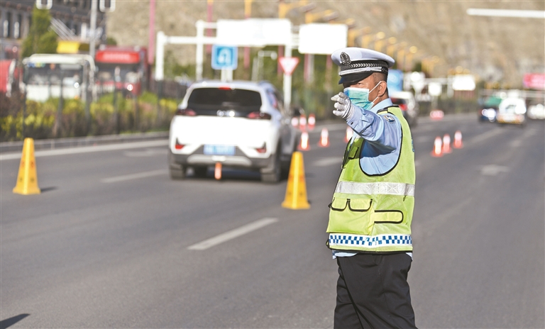 考場(chǎng)外執(zhí)勤的交警。拉薩融媒記者 平措旺堆 巴桑次仁攝