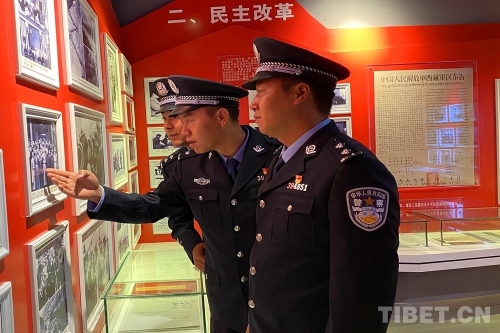 圖為浪卡子邊境管理大隊(duì)開設(shè)警營講堂,帶領(lǐng)民警走近國恥歷史 攝影:楊敬臣