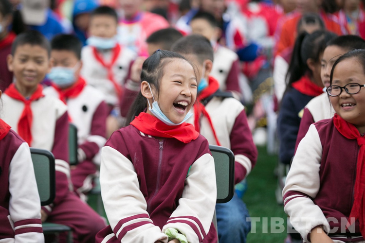 圖為捐贈(zèng)儀式現(xiàn)場(chǎng)開(kāi)心的學(xué)生 圖片由郎朗藝術(shù)基金會(huì)提供