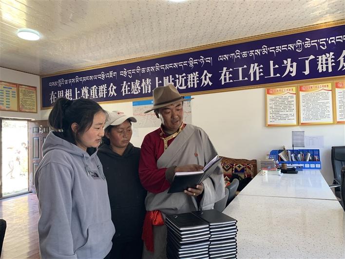 圖為察隅縣古玉鄉(xiāng)古井村黨支部書記羅布扎西在給村里的“雙聯(lián)戶”黨員講解如何做黨員筆記。西藏日?qǐng)?bào)記者 張猛 本報(bào)通訊員 魯茸七林 攝