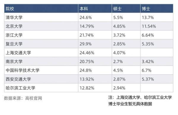 不過,南京大學(xué)成為個(gè)例,博士生就業(yè)率為97.95%,低于本科生和碩士生就業(yè)率。另外,除中國科大、浙大博士生就業(yè)率略低于碩士生就業(yè)率外,其他高校博士生就業(yè)率均為最高。