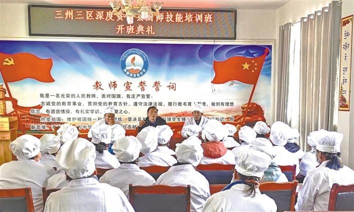 為提高農(nóng)牧民群眾的勞動技能,拓寬就業(yè)渠道,日前,西藏山南措美縣教育局組織中小學校廚師、建檔立卡貧困戶50人,開展了為期5天的三區(qū)三州職業(yè)教育廚師技能培訓。