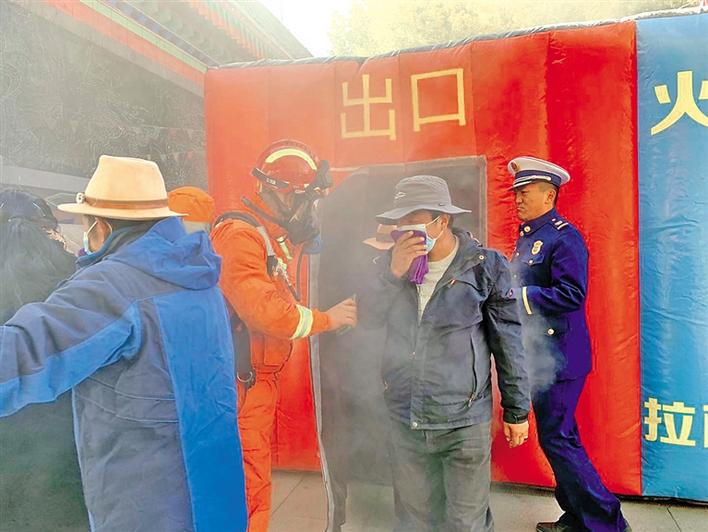 拉薩市消防救援部門組織市民開展火災(zāi)疏散逃生應(yīng)急演練。