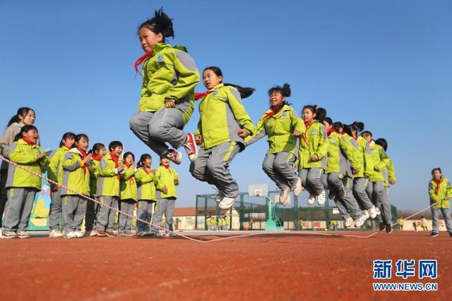 11月12日,學(xué)生在大課間參加集體跳繩。 位于山東省青島市即墨區(qū)的青島藍(lán)谷高新區(qū)東皋埠小學(xué)是一所鄉(xiāng)村學(xué)校,近年來,學(xué)校開展以乒乓球、籃球、跳繩等運(yùn)動為主的大課間活動,讓孩子們在享受運(yùn)動的同時(shí)愉悅身心,增強(qiáng)體質(zhì)。 新華社發(fā)(梁孝鵬攝)