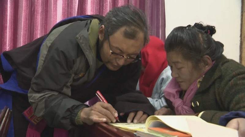帕那鎮(zhèn)一村宣講員嘎達(dá)耐心的用通俗易懂的本土藏語(yǔ)給這些大齡學(xué)生講漢語(yǔ)拼音課,課堂上有20名來(lái)自附近的牧民群眾,他們不時(shí)低頭做筆記、不時(shí)舉手提問(wèn),生怕錯(cuò)過(guò)每一個(gè)字節(jié)。60歲的次吉是這里年齡最大的學(xué)員,一年中她最期盼的事情就是參加“夜?!睂W(xué)習(xí)?!拔倚r(shí)候條件不好,沒(méi)有機(jī)會(huì)接受教育,文化水平低,現(xiàn)在條件好了,就來(lái)夜校學(xué)習(xí),老師講得通俗易懂,我感覺(jué)收獲很多?!贝渭獙?duì)說(shuō)。