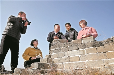 “讓每一塊城磚開口,讓每一處遺址說(shuō)話?!惫疟笨阪?zhèn)中心小學(xué)校長(zhǎng)徐國(guó)文(左三)帶領(lǐng)教師把教研活動(dòng)搬到了長(zhǎng)城上,探討如何打破課程設(shè)置“壁壘”,在考察、尋訪、探究、實(shí)踐中培養(yǎng)學(xué)生堅(jiān)毅品格。樊世剛 攝