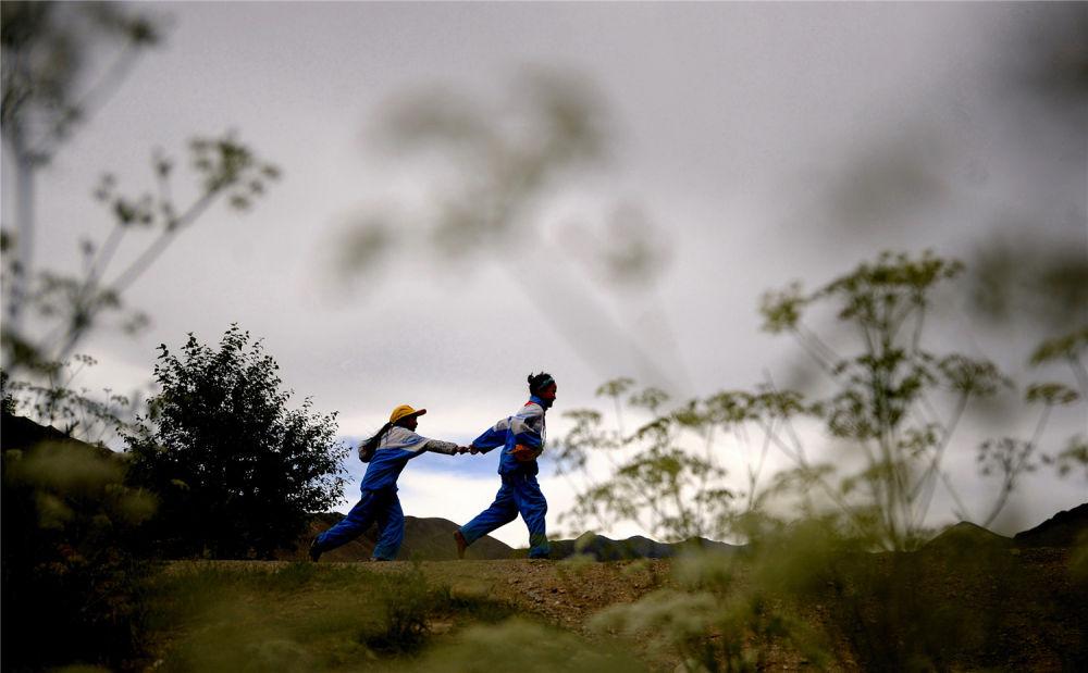 西藏拉薩市墨竹工卡縣的兩名孩子放學回家(2010年7月14日攝)。新華社記者 普布扎西 攝