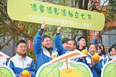 12月4日,成都七中萬達(dá)學(xué)校首屆“添柚節(jié)”開幕。“添柚節(jié)”覆蓋了多個(gè)年級(jí),設(shè)置了多項(xiàng)活動(dòng),并融入學(xué)科元素,如初一年級(jí)結(jié)合生物和美術(shù)學(xué)科,或用柚子做小零食進(jìn)行義賣,或在柚子上繪出不同的圖案;初二年級(jí)則結(jié)合地理和美術(shù)學(xué)科,描繪出一幅幅中國的“水果”地圖;高三年級(jí)的學(xué)生摘下柚子與老師一同品嘗豐收的味道。