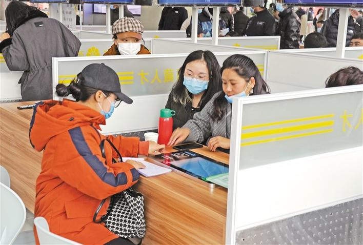 圖為招聘會現(xiàn)場,求職者在向用人單位咨詢崗位信息。唐斌 次仁平措 攝