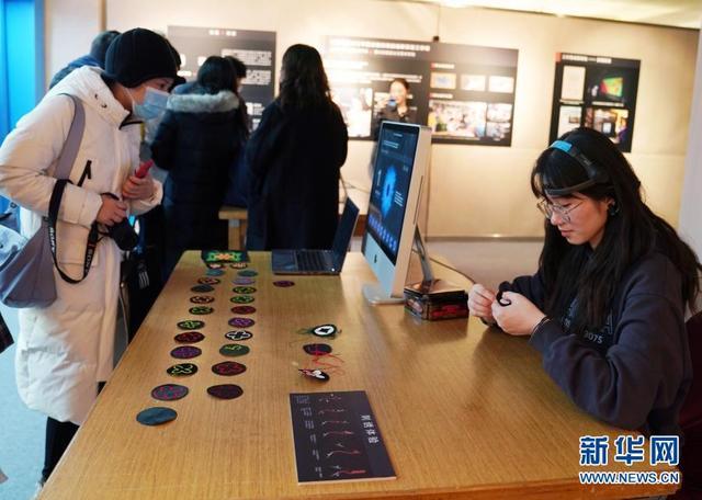 12月15日,觀眾在參觀上海大學(xué)可穿戴技術(shù)與中國(guó)非遺刺繡創(chuàng)新實(shí)驗(yàn)工作坊項(xiàng)目。