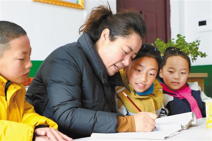 圖為寒假期間,德西拉措給福利院孩子輔導作業(yè)。桑鄧旺姆 攝